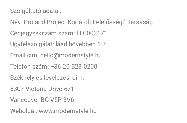 A Felek között az áru megvásárlásával magyar nyelven létrejött szerződés írásba foglalt szerződésnek minősül, a Szolgáltató azt iktatja, és annak létrejöttét követő 5 évig őrzi.